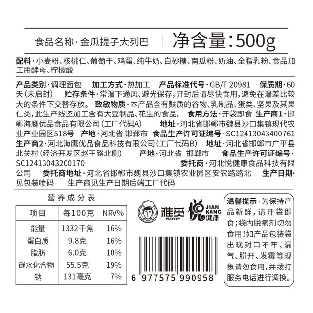 南瓜风味,饱腹抗饿硬核有料,果仁果干含量≥31%1、列巴足足一斤重,早餐优选,果仁果干含量≥31%,...更多