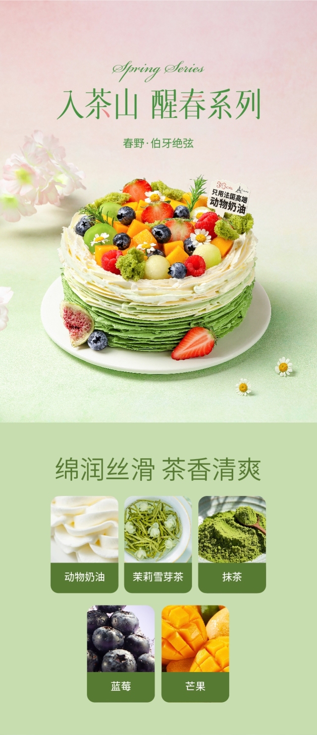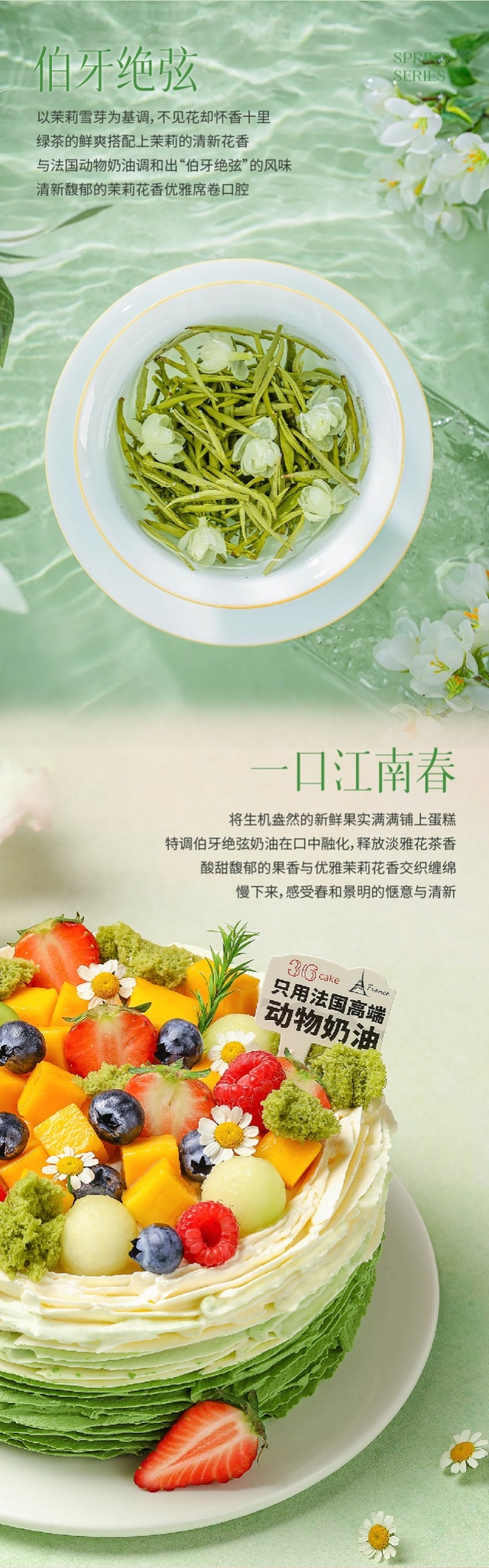 将生机盎然的新鲜果实满满铺上蛋糕,特调伯牙绝弦奶油在口中融化,清新馥郁的茉莉花香优雅席卷口腔,酸甜馥...更多