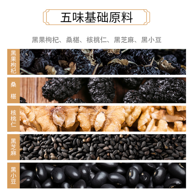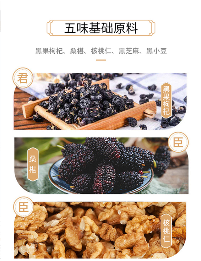黑果枸杞核桃仁黑桑葚黑芝麻黑小豆黄精蛹虫草黑米