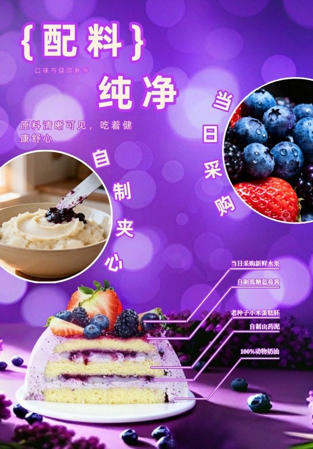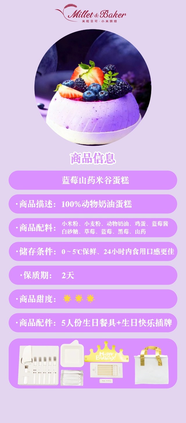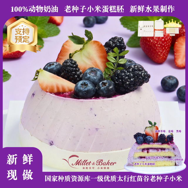 100%动物奶油,新鲜水果制作,进入国家种质资源库的一级优质米-太行红苗谷老种子小米制作蛋糕胚,4英...更多