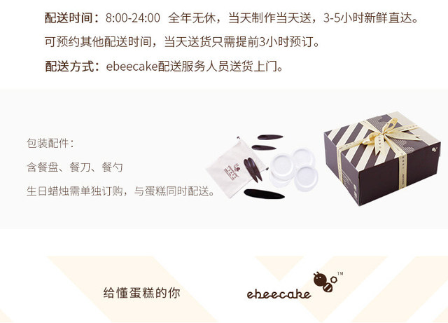 提供慢必赔服务保障,同城生日蛋糕商品订单若晚到1小时,此单无条件退款,此蛋糕免费赠送。(恶劣天气等外部不可控因素导致配送延迟情形除外)