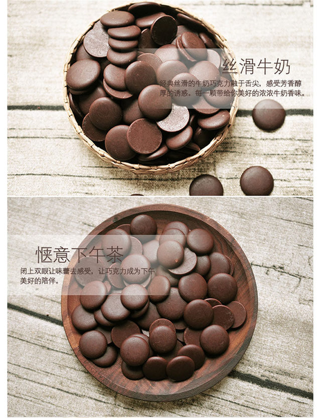 纯可可脂牛奶巧克力好吃停不下,钮扣形状更可爱,纯巧克力适合当零食或者烘培