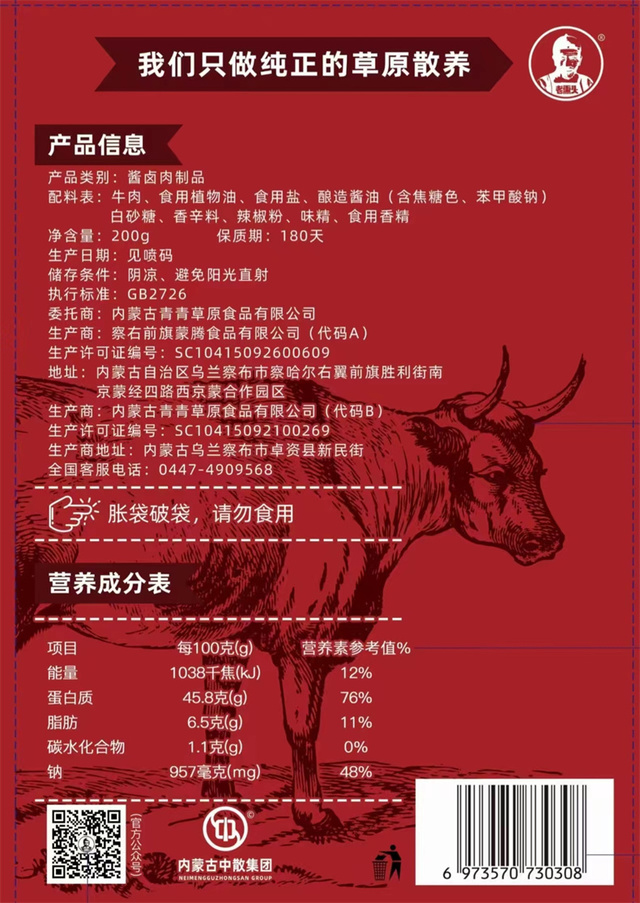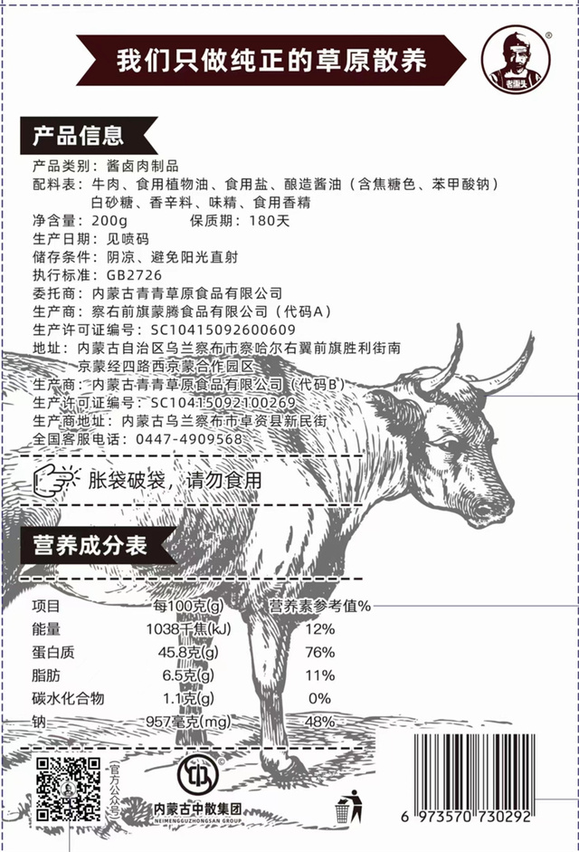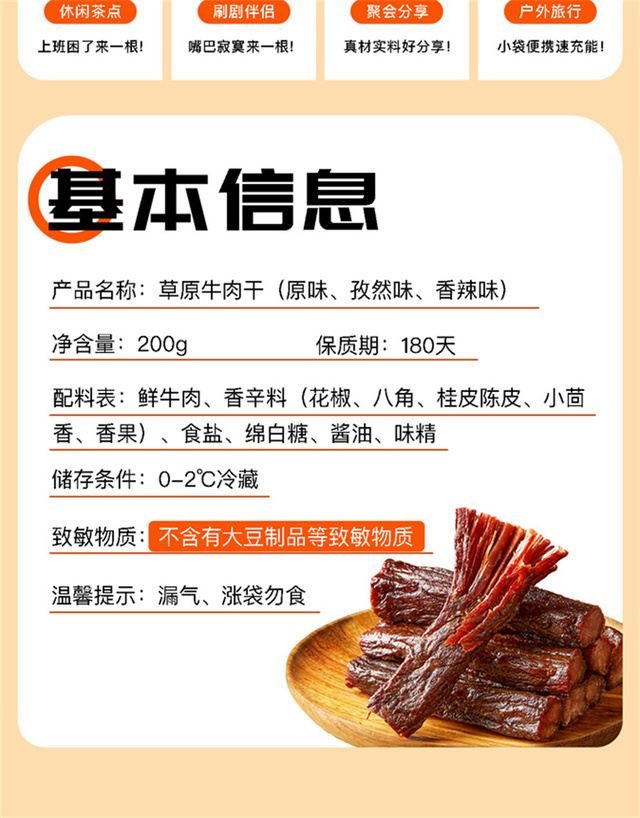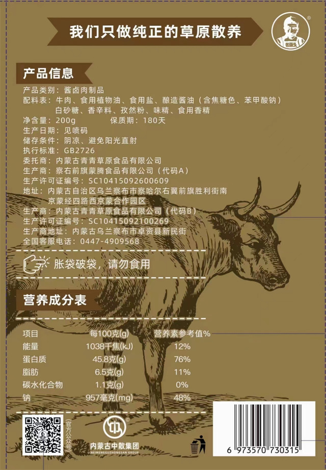 老熏头中华老字号内蒙古草原牛肉干200g*2袋