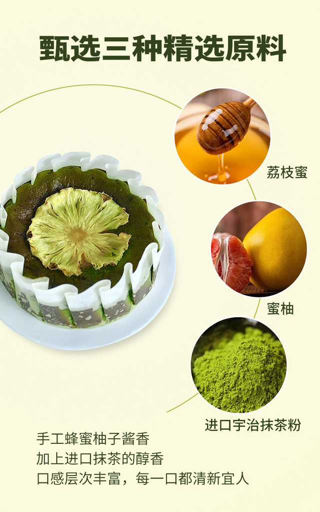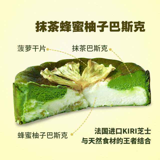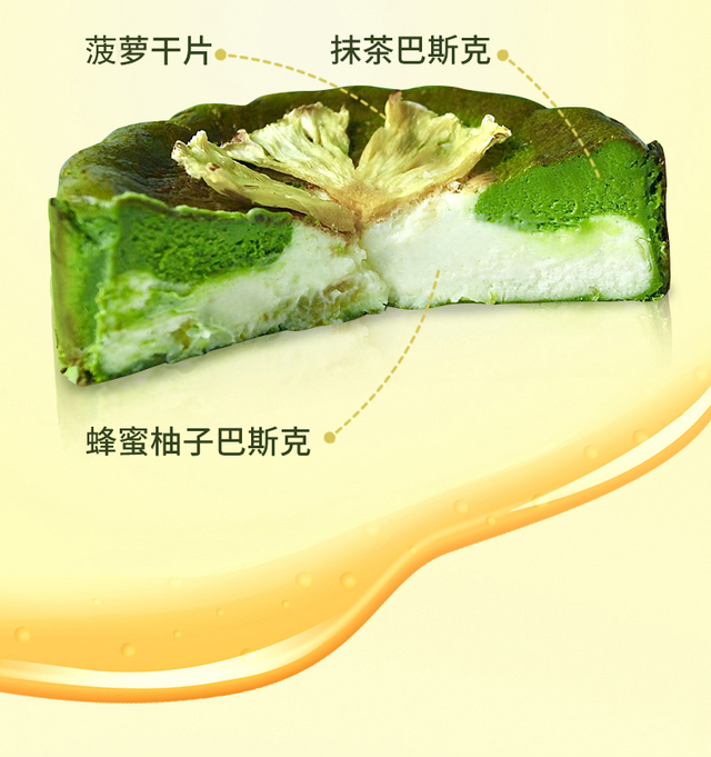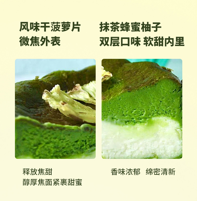 抹茶的微苦与蜂蜜柚子的香甜相互映衬,味蕾上绽放烟花带来层叠惊喜,表面的干菠萝片增添一抹亮丽色彩和独特...更多