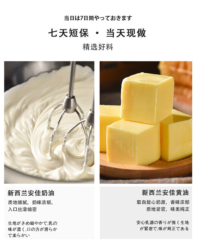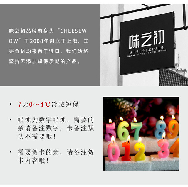 选用进口奶酪,手工制作。每款蛋糕芝士含量芝士含量超高哦,口感醇厚,皂质感明确。注:下单后48小时内发...更多