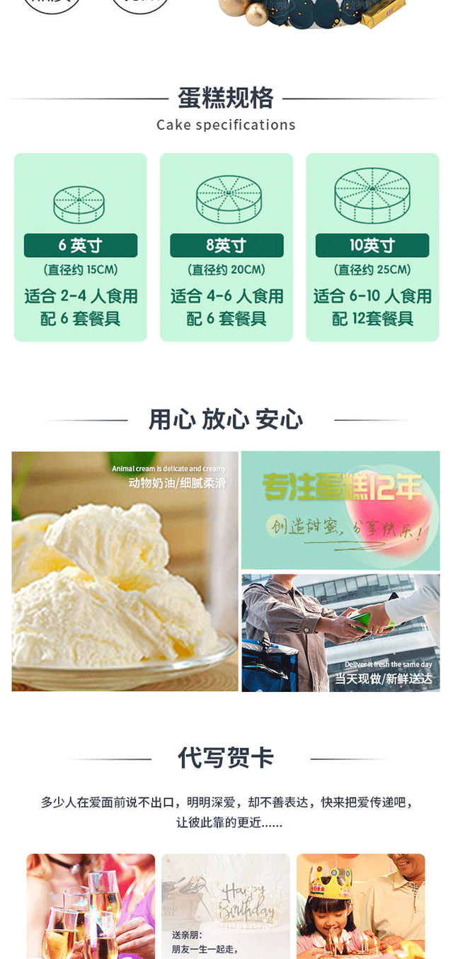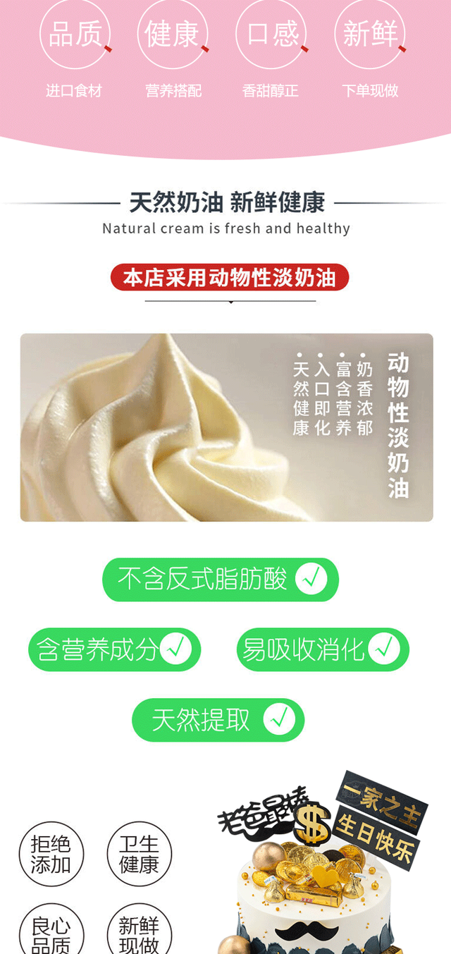 提供慢必赔服务保障,同城生日蛋糕商品订单若晚到1小时,此单无条件退款,此蛋糕免费赠送。(恶劣天气等外部不可控因素导致配送延迟情形除外)