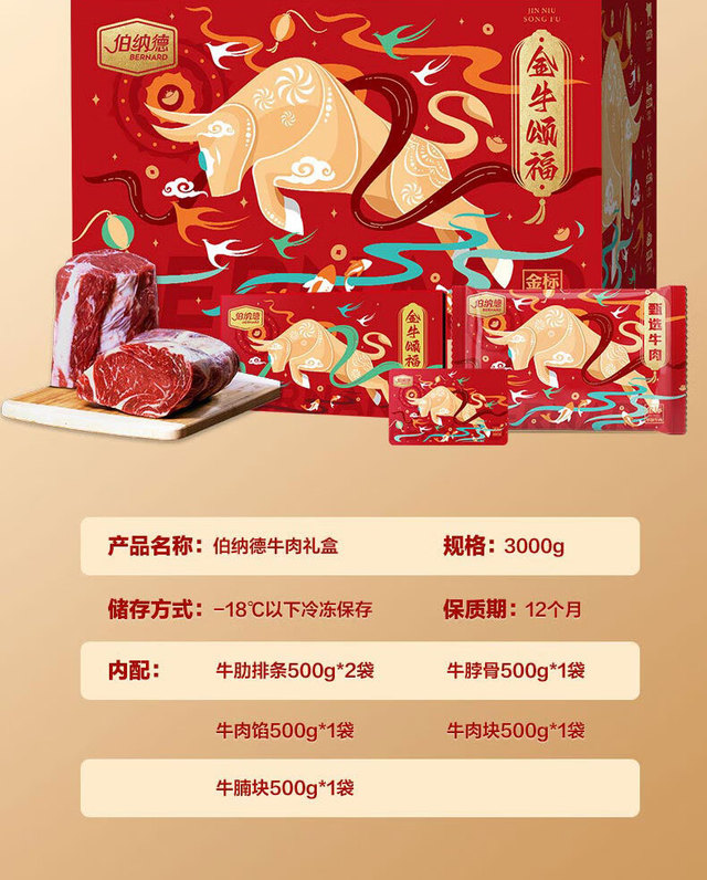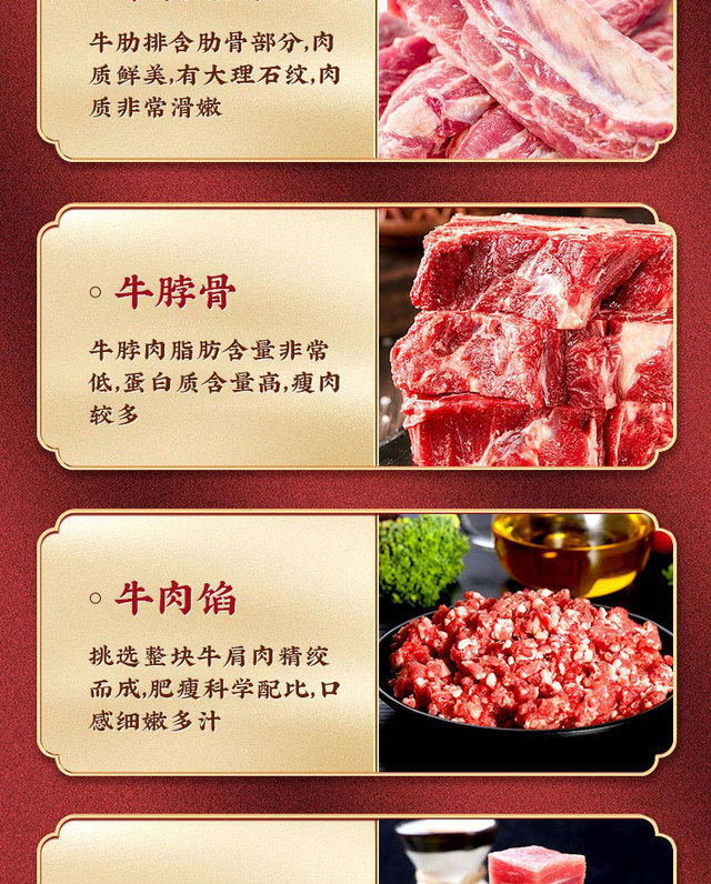 牛肋排条500g*2牛脖骨500g牛肉馅500g牛肉块500g牛腩块500g