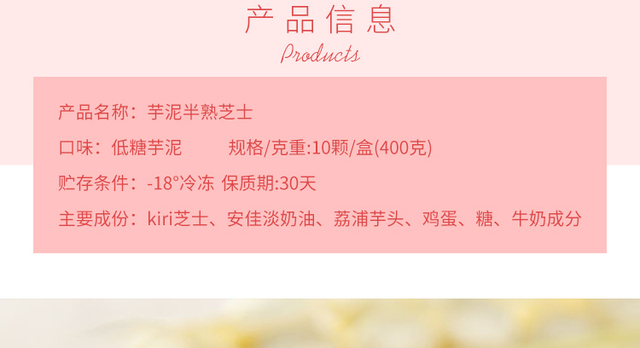 甄选kiri芝士马斯卡彭奶酪安佳淡奶油荔浦现蒸现捣的芋泥浓郁的芋泥香味带动顺滑芝士的味蕾洁净的配料,...更多