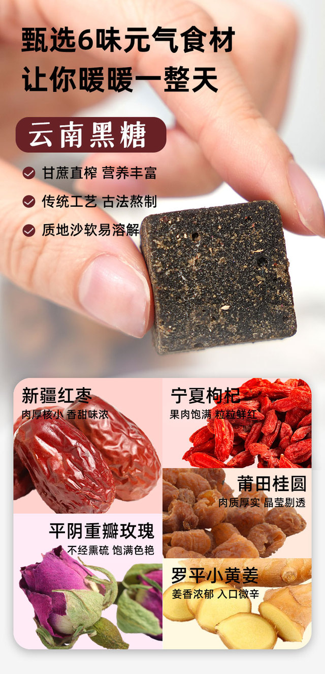 甘蔗直榨、营养丰富、传统工艺、古法熬制、质地沙软易溶解。