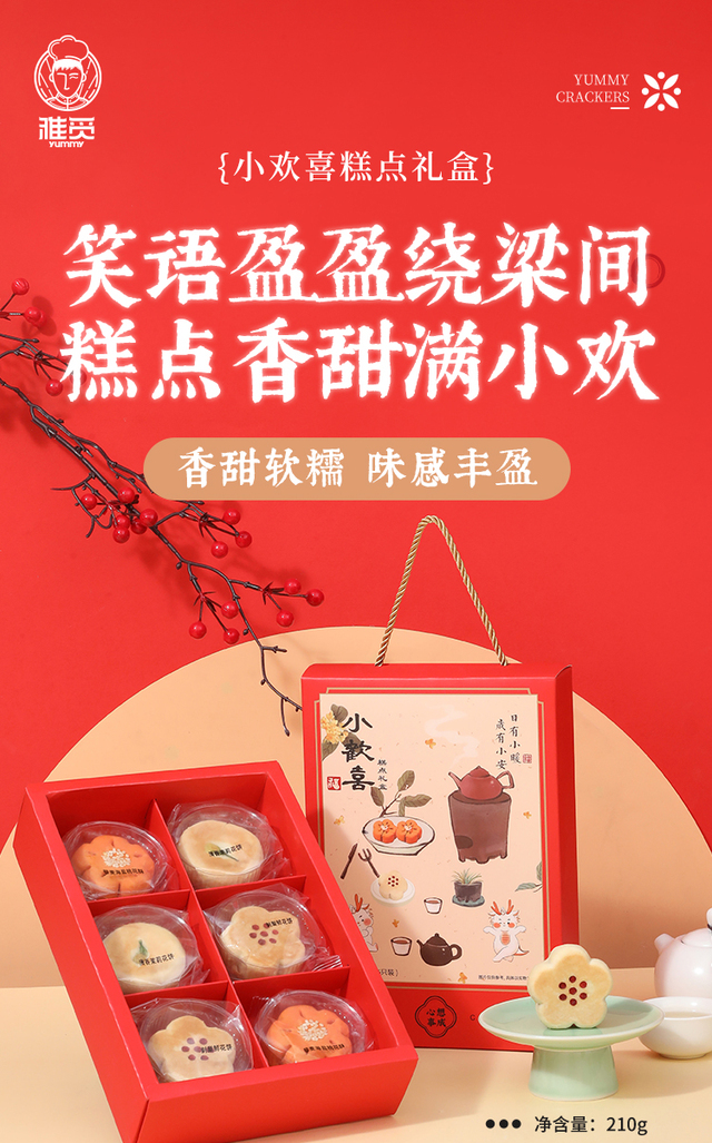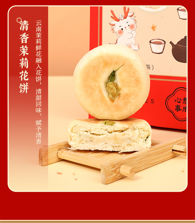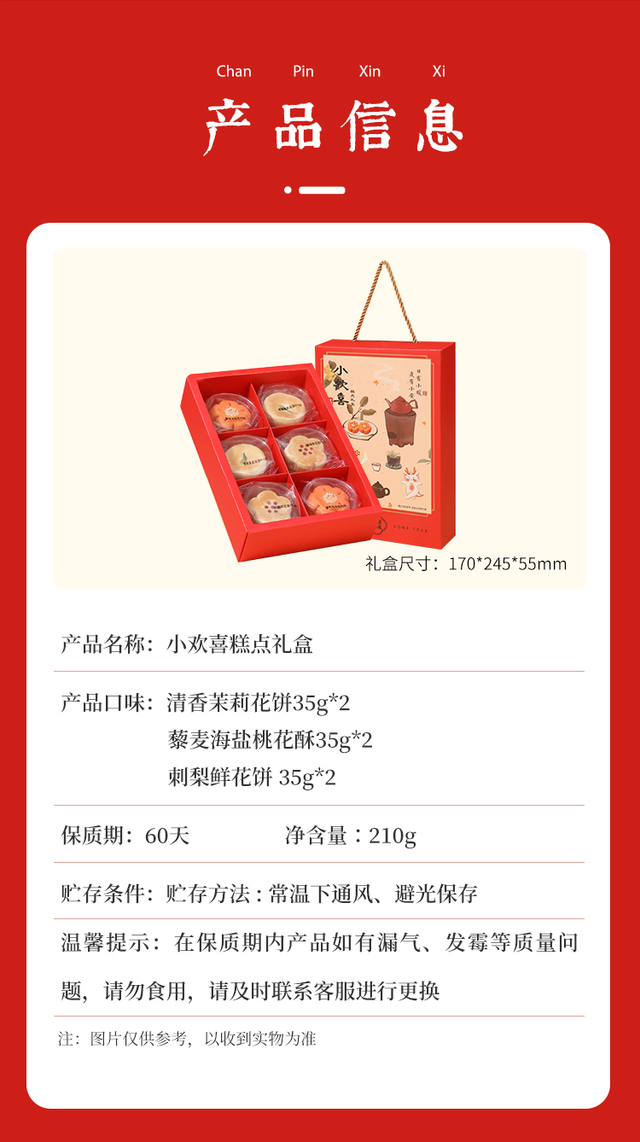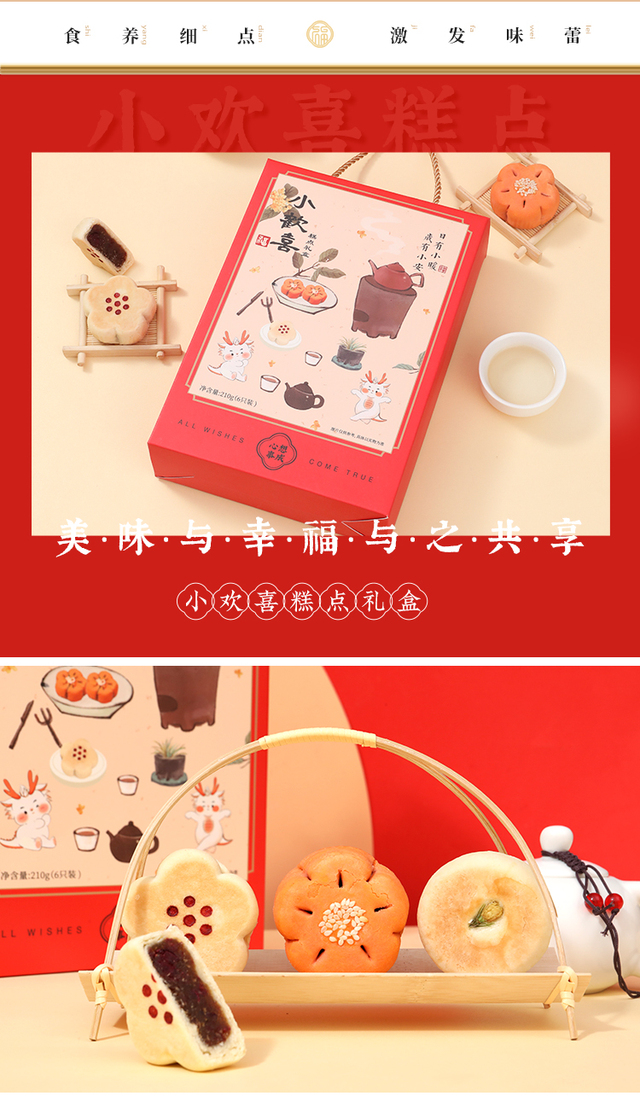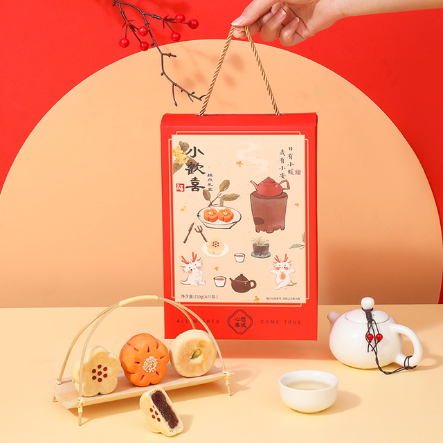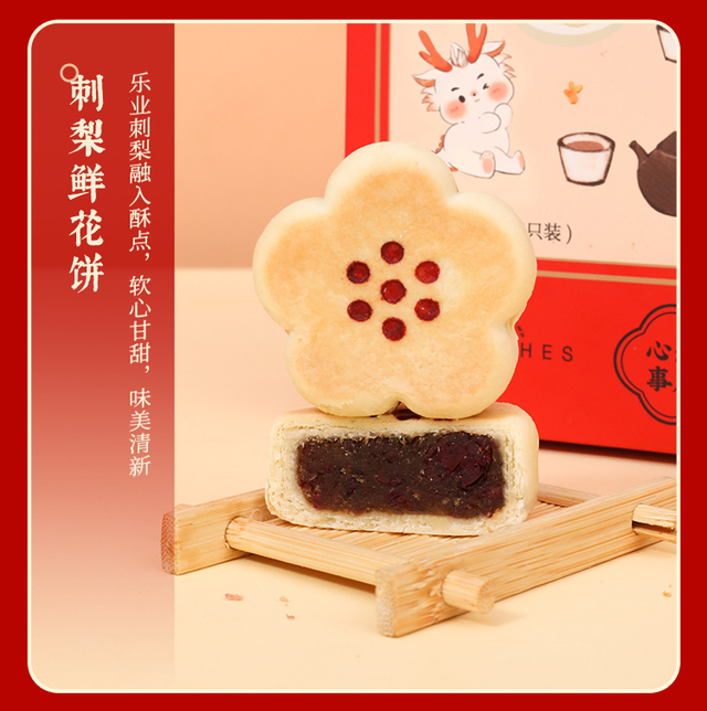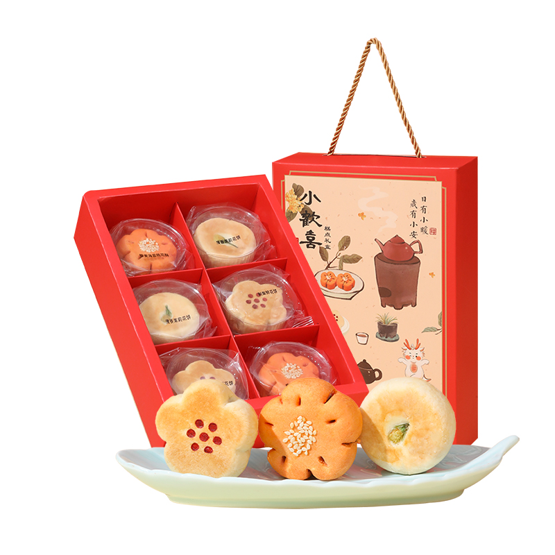 小欢喜国风糕点礼盒-营养更丰富一盒三味6枚,高颜值花饼与花酥组合,适合七夕、中秋等各种节令节日。清香...更多
