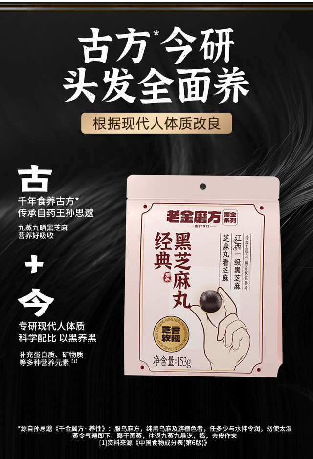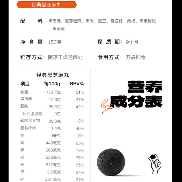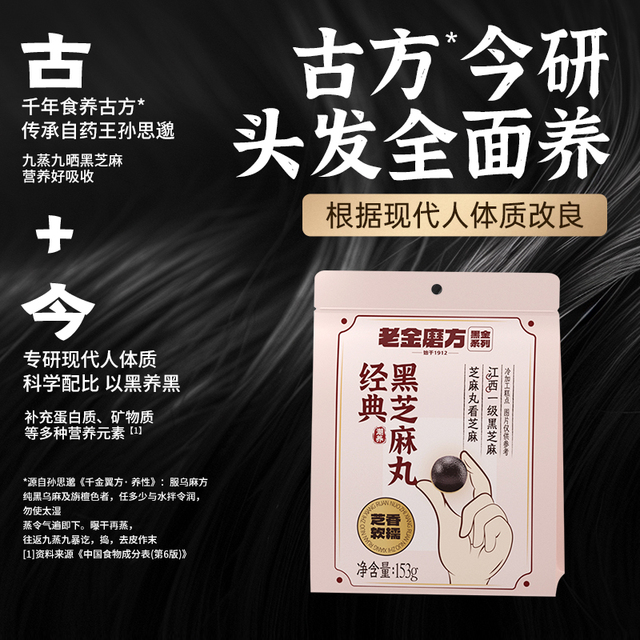 商品名称:老金磨方黑芝麻丸126g是否独立包装:独立包装脂肪含量:低脂是否添加蔗糖:0添加蔗糖是否有...更多