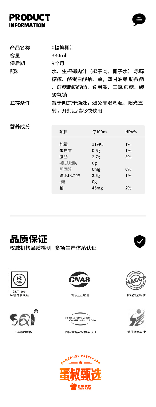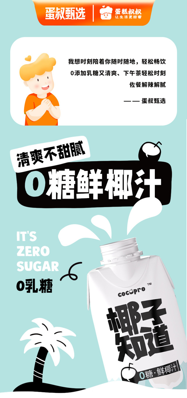 0糖鲜椰汁无糖椰奶椰汁植物蛋白饮料咖啡伴侣低GI饮料