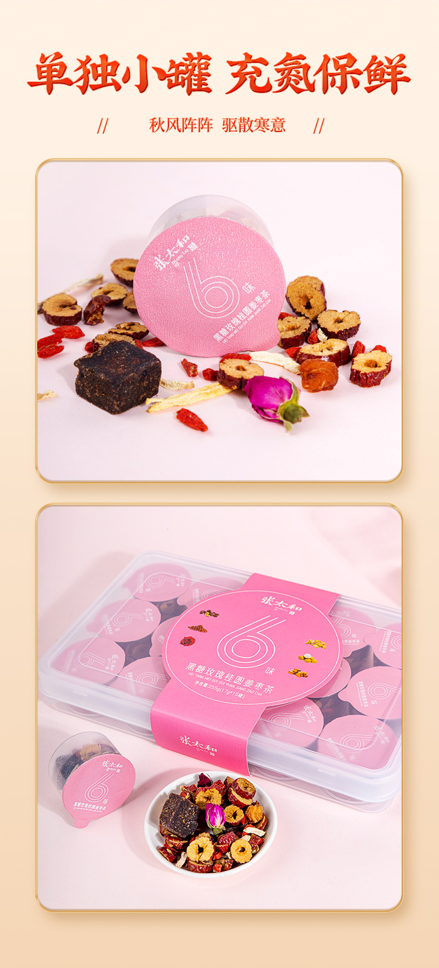 男女元气花颜茶组合水果花草茶包张太和黑糖玫瑰桂圆姜枣茶255g(17g*15罐)礼盒+礼袋*1
