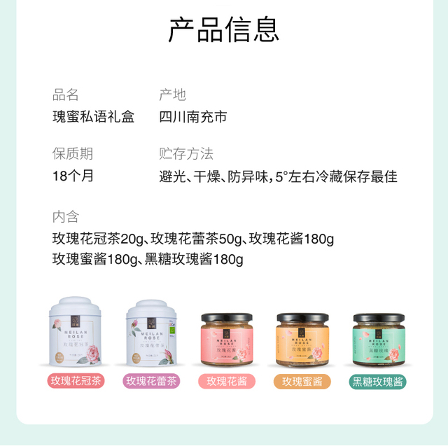 玫澜瑰蜜私语礼盒有机玫瑰花冠茶20g有机玫瑰花蕾茶50g玫瑰花酱180g玫瑰蜜酱180g黑糖玫瑰酱1...更多