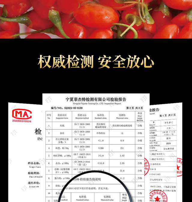 宁夏枸杞,贵在道地,中宁枸杞,道地珍品.1、最新检验报告合格,绿色食品和地理认证。2、宁夏道地产区,...更多