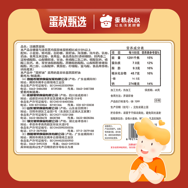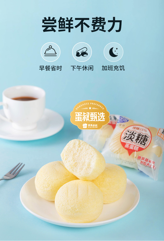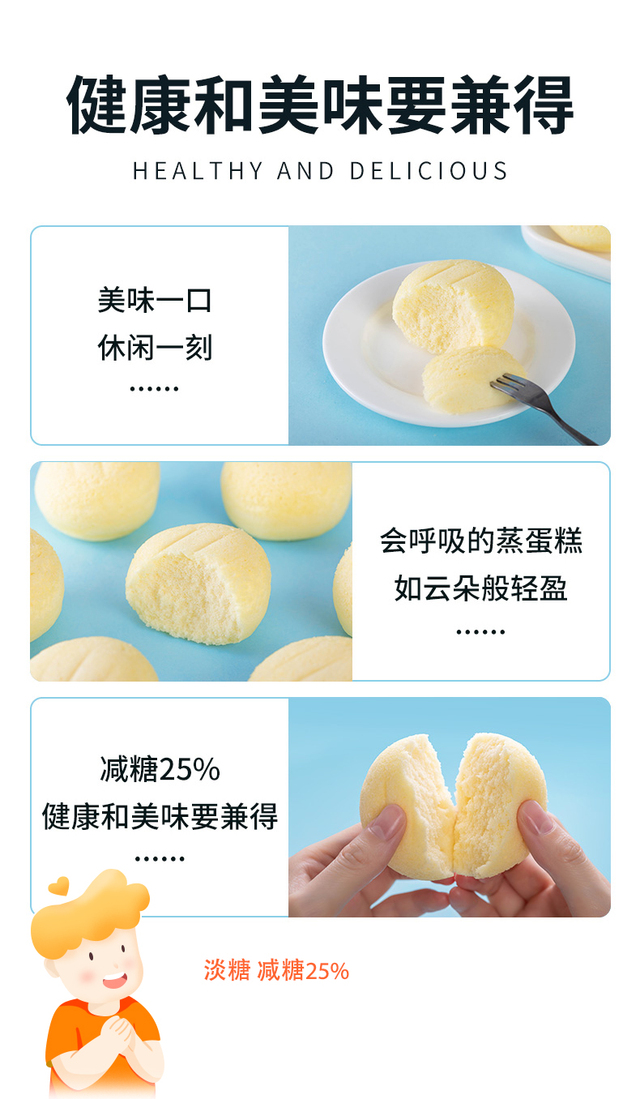 [减糖25%]蒸蛋糕淡糖蛋糕营养早餐食品办公室手撕面包饼干蛋糕