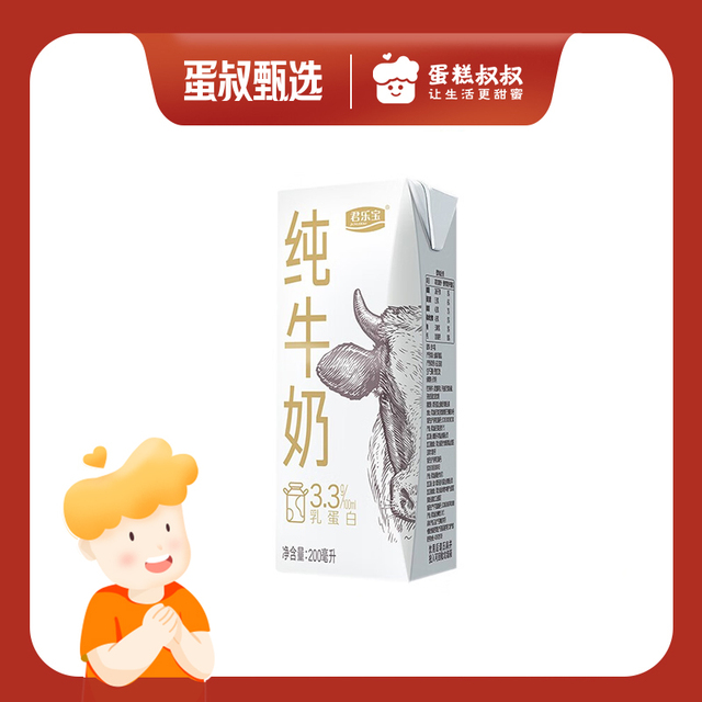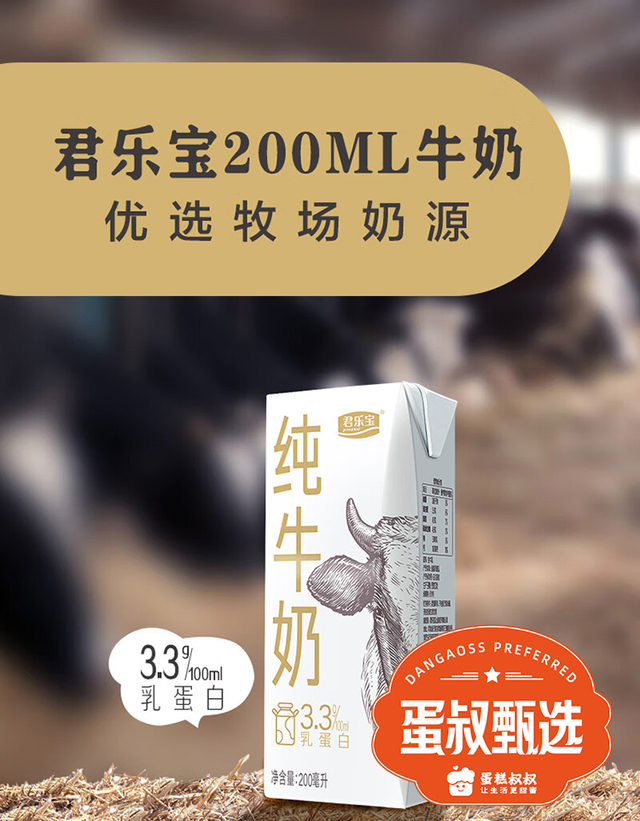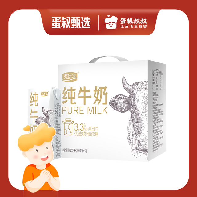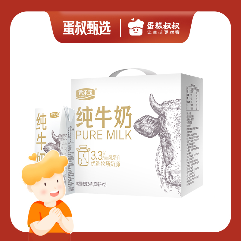 【蛋叔甄选】君乐宝优选牧场纯牛奶200ml*12盒