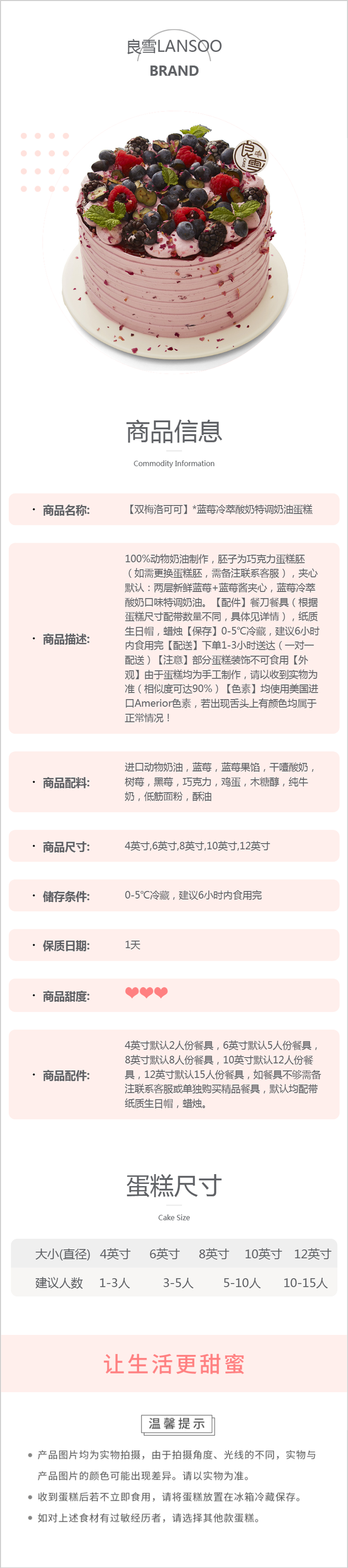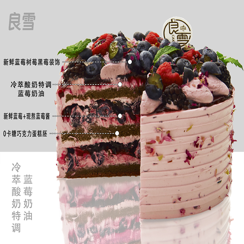 100%动物奶油制作,胚子为巧克力蛋糕胚,夹心默认:两层新鲜蓝莓+蓝莓酱夹心,蓝莓冷萃酸奶口味特调奶...更多