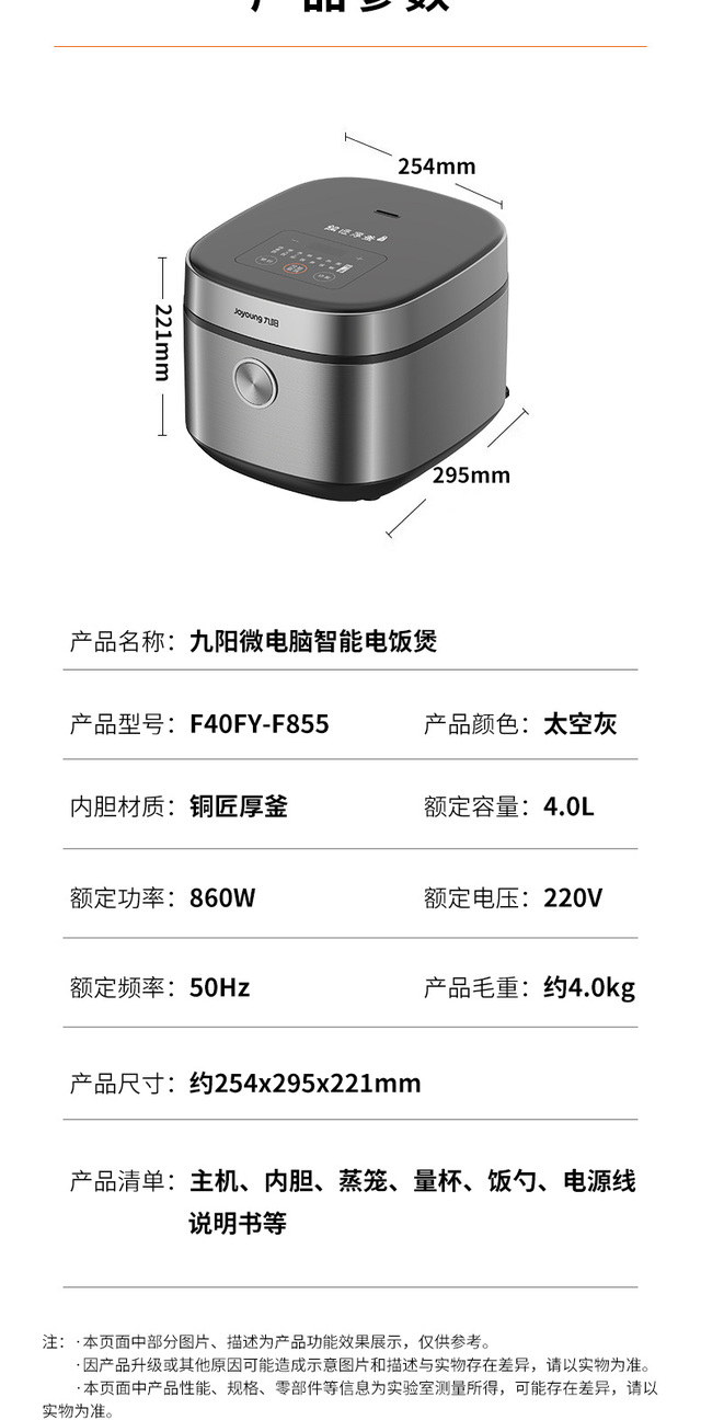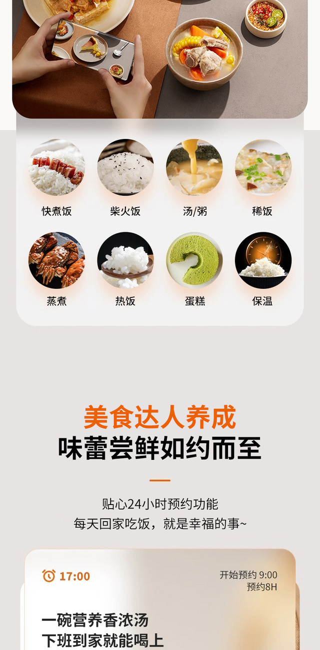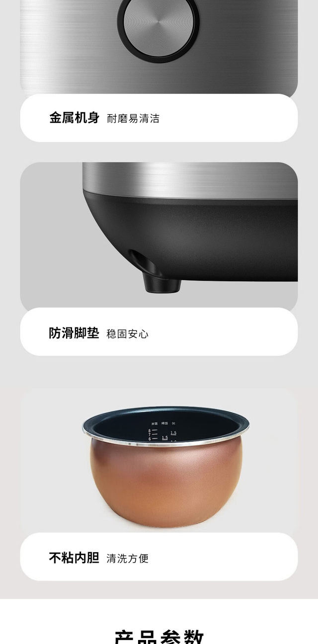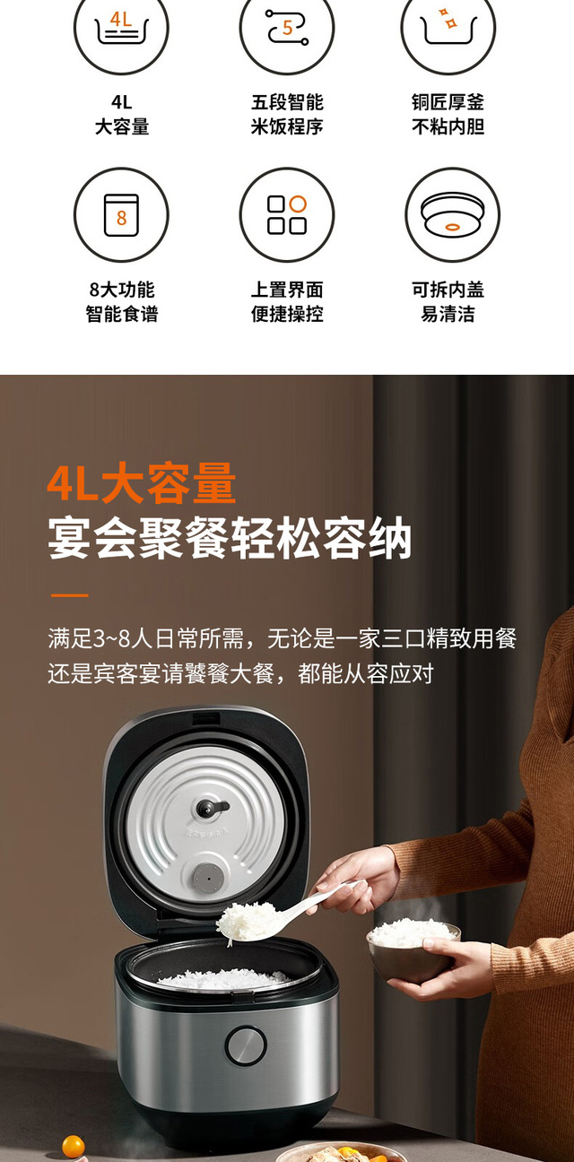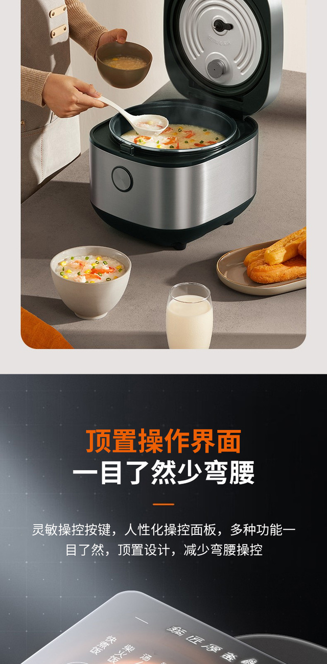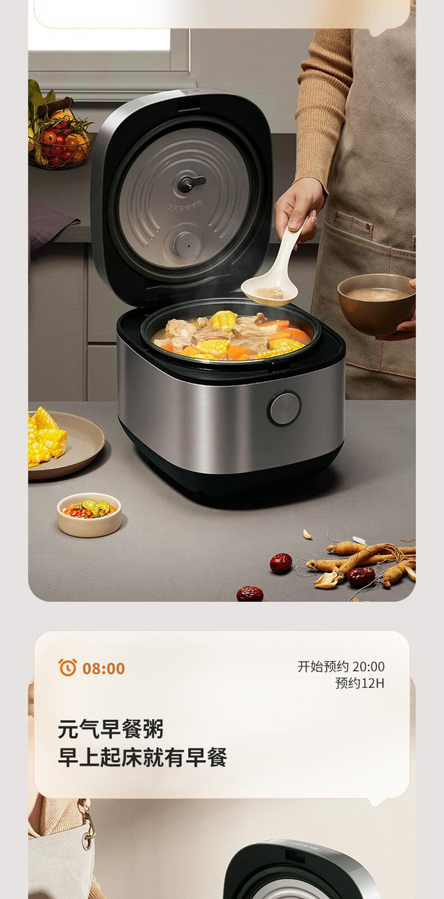 24小时预约,容量4L,功率860W;顶置操作界面,一目了然少弯腰;大火力烹煮,释放米饭原香;铜匠厚...更多