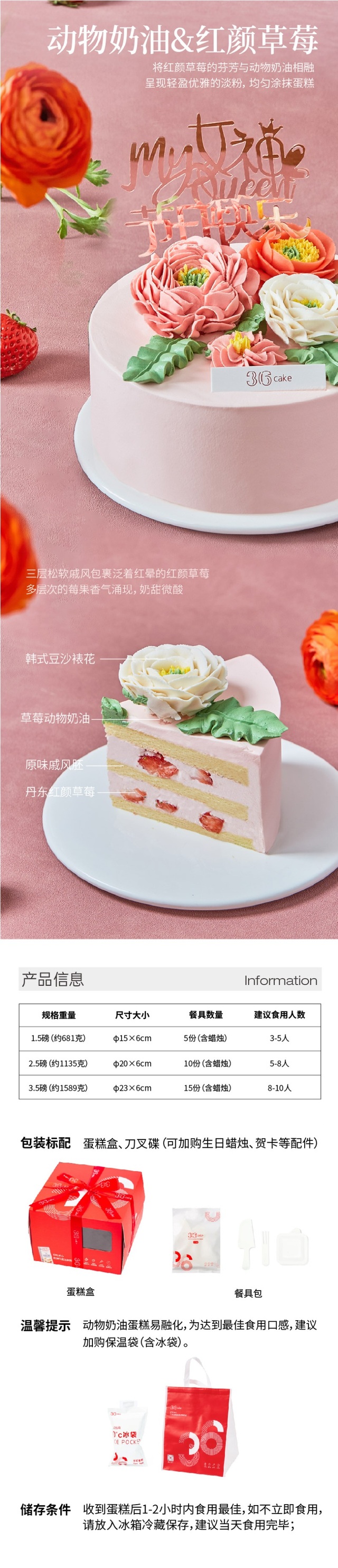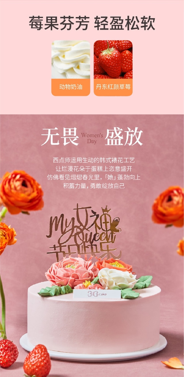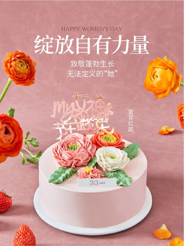 西点师运用生动的韩式裱花工艺,让烂漫花朵于蛋糕上恣意盛开,正如「她」蓬勃向上,勇敢绽放自己。将红颜草...更多