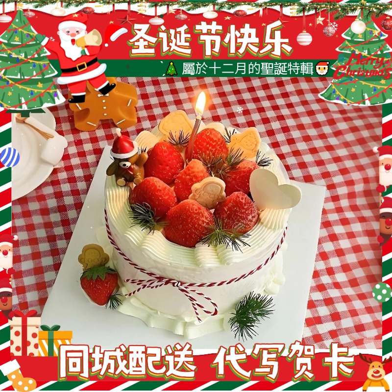 动物奶油—圣诞饼干小熊草莓蛋糕