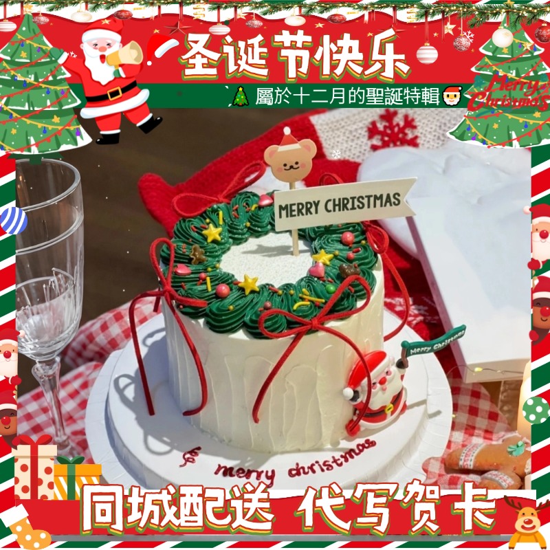动物奶油—蝴蝶结圣诞花环蛋糕